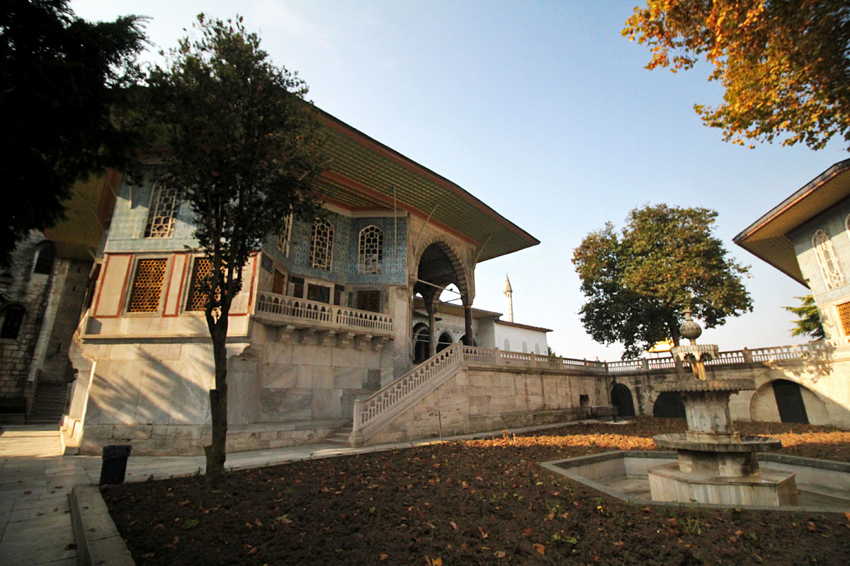Fountain with pond just outside the Harem. I think the area behind the columns is the Arz Odası or “Audience Hall”.