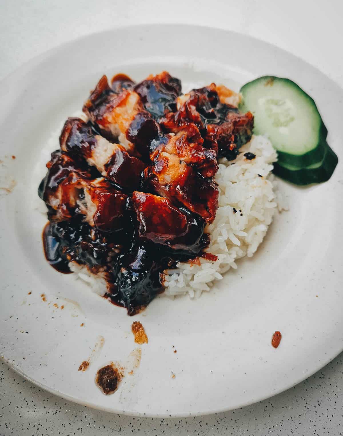 This last entry isn’t a Singapore restaurant or a hawker center stall. It’s a food tour, an excellent street food tour by A Chef’s Tour featuring the most incredibly delicious char siew rice dish I’ve ever tasted in my life. Just look at that thing!