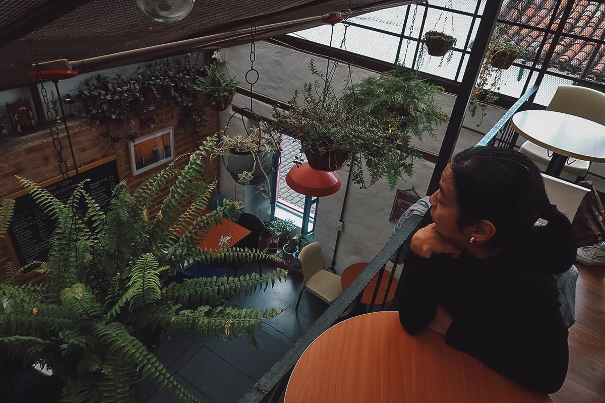Cafe del Mercado is a tiny, family-run shop with about three or four tables on the first floor and a few more on this second-floor loft space. It’s a great place to have coffee and dessert after a day exploring La Candelaria.