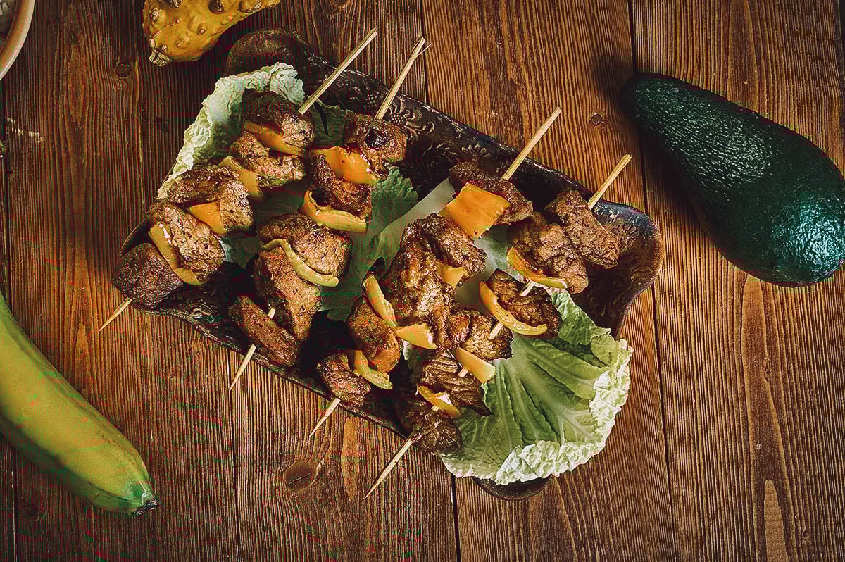 Mshikaki is often eaten as a snack, usually with roasted potatoes in a pairing commonly known as “chips mshikaki”. It can also be enjoyed with smoked or roasted plantains and fried cassava.