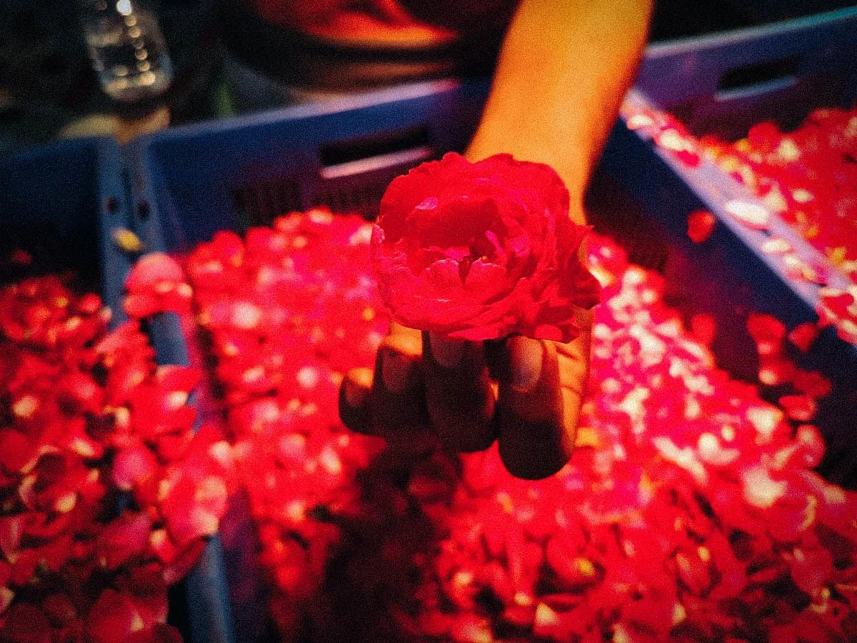 This is what it’s like walking inside the market. The aisles are strewn with fallen petals so you’re quite literally walking on a bed of flowers.