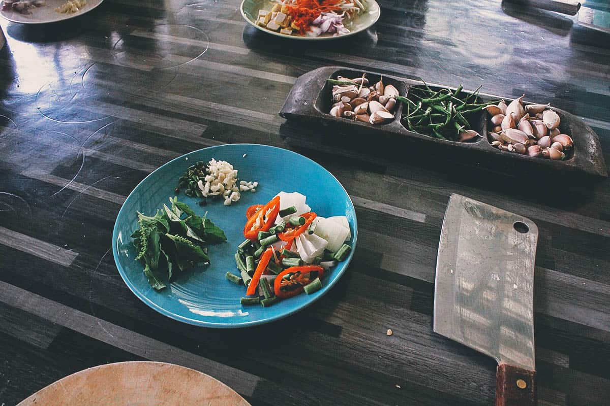 Some of the ingredients for today’s class, brought straight from the fresh market. This was the prepping station.
