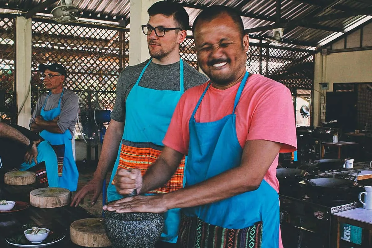 The cost for the cooking class comes with roundtrip transportation from your hotel in Chiang Mai. Otherwise, you can use Uber or Grab to get to Mama Noi Thai Cookery School.