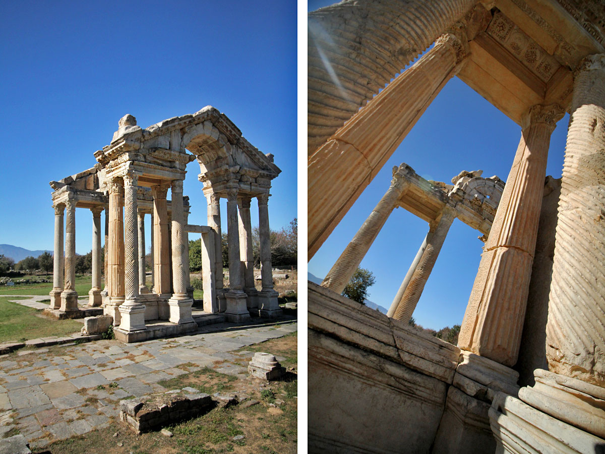 One of the most striking structures in Aphrodisias, this monumental gate greeted pilgrims as they approached the Temple of Aphrodite.