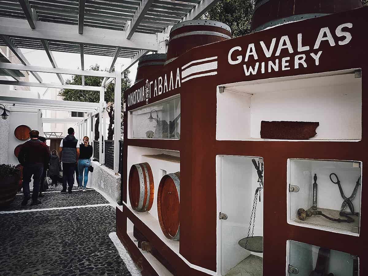 The next winery we’d visit on the tour felt very different from Estate Argyros. Though both are family-run wineries, Gavalas Winery wasn’t nearly as large or as industrialized and felt more like a boutique winery. It’s located in Megalochori, the charming small town where we stayed in Santorini.