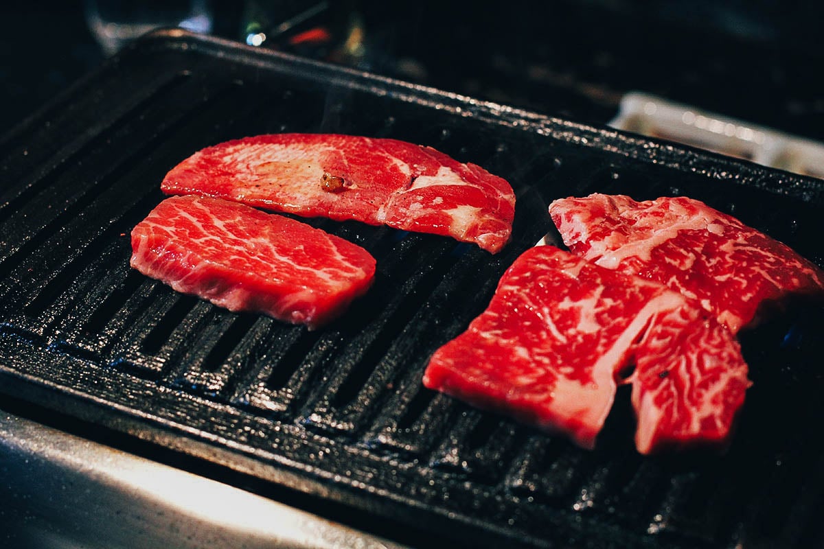 The first few slices of beef loin start sizzling on the grill. Though the term yakiniku refers to the Japanese way of grilling meat, it’s a style of cooking that’s widely considered to have Korean roots. It’s believed to be a variant of Korean bulgogi or galbi that became widespread in Japan after WWII.